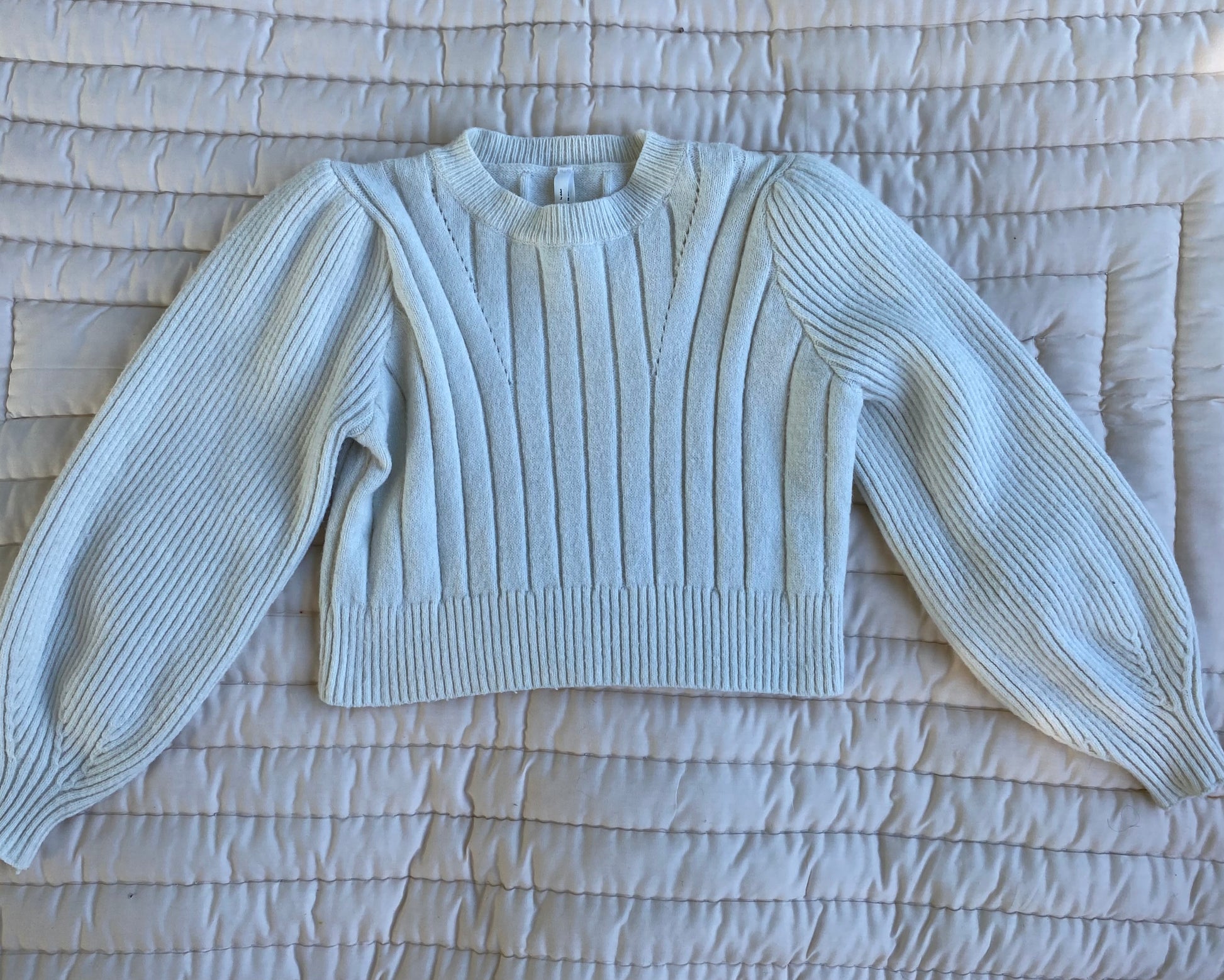 Soft Cream Ribbed Puff Sleeve Sweater – Size M