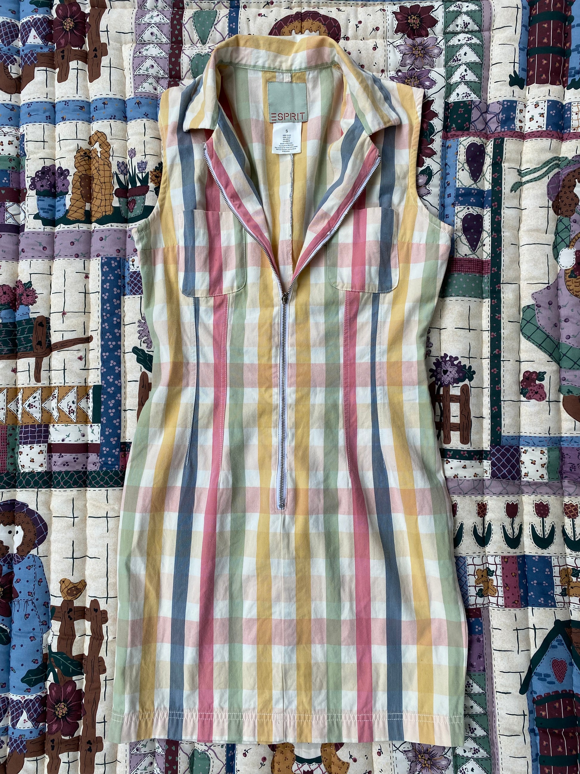 Vintage Esprit Pastel Plaid Sleeveless Zip-Front Dress (SOLD)