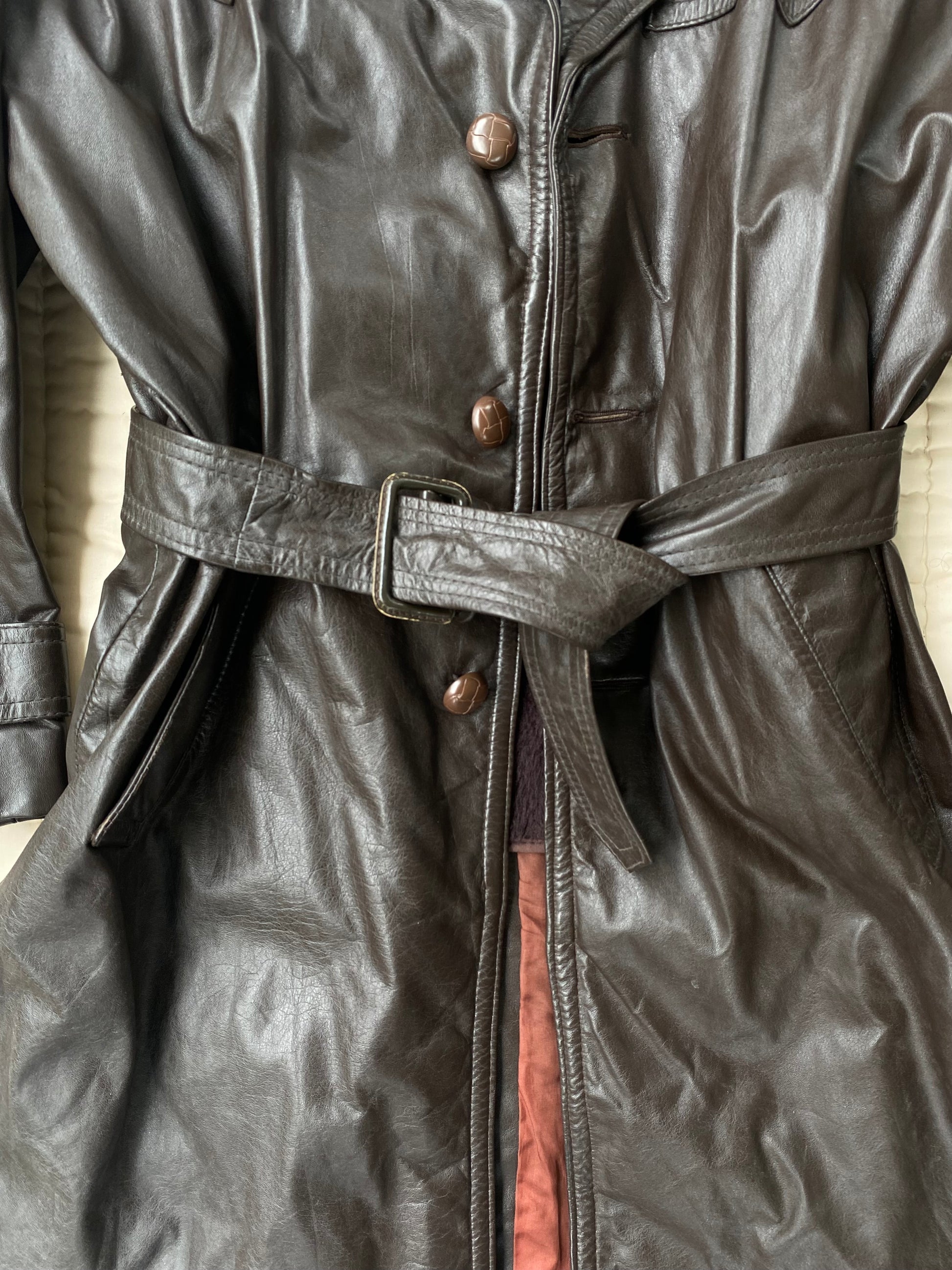 Vintage 1970s Franco Canadian Brown Leather Trench Coat – Size 36