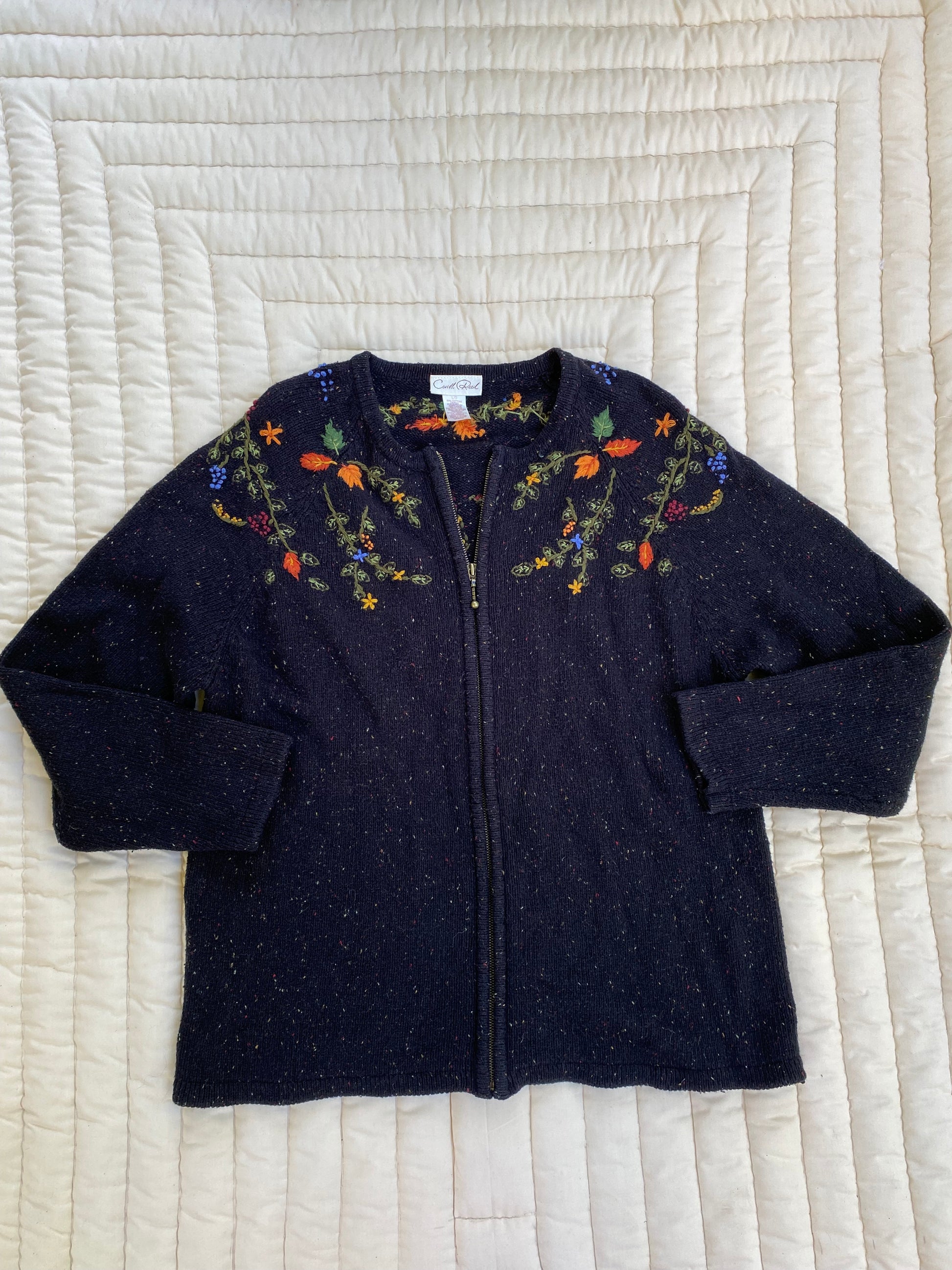 Vintage Floral Embroidered Zip Cardigan ā Perfect Fall Sweater
