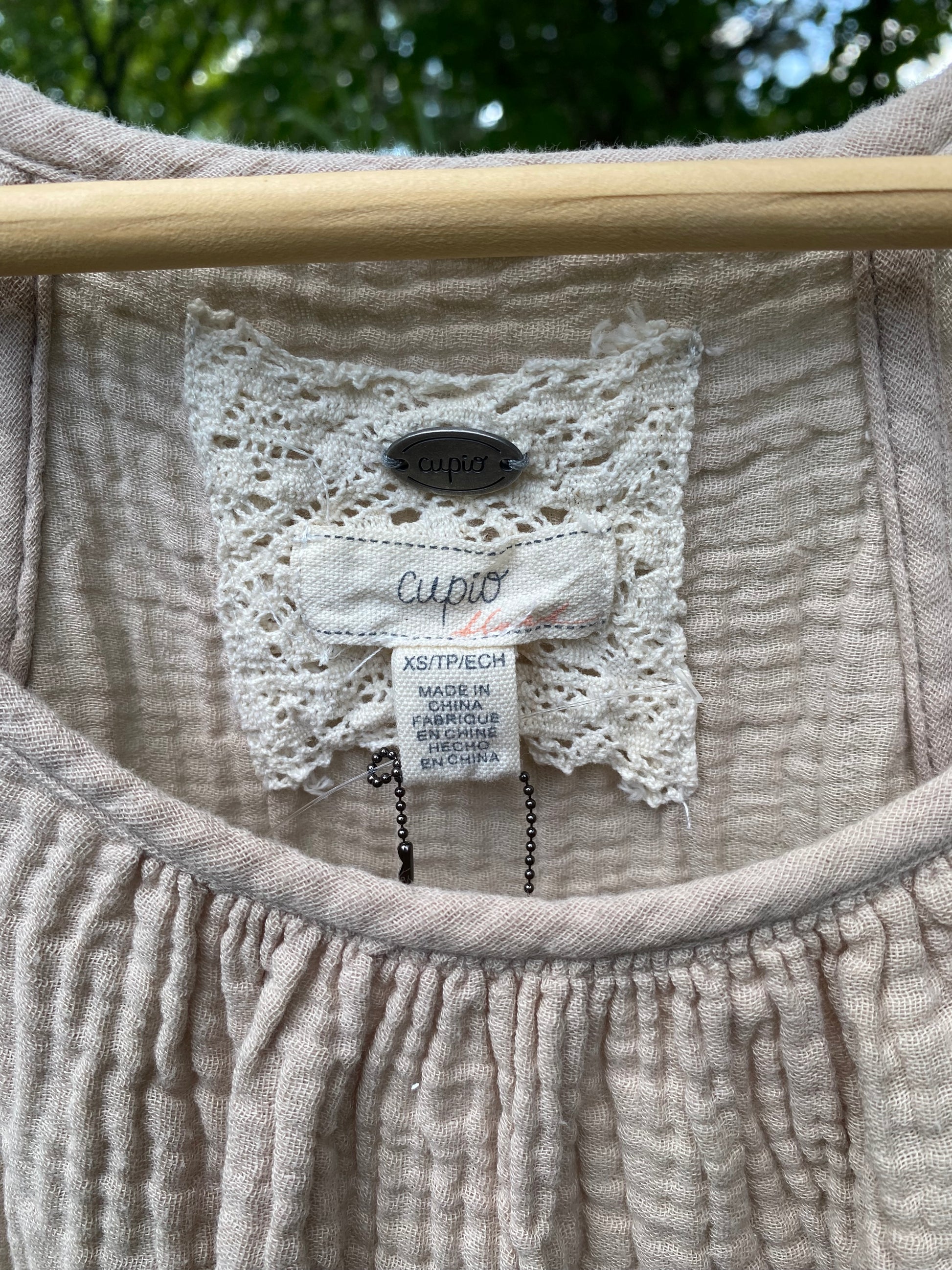 Charming and romantic, this vintage prairie-style peasant blouse features a soft taupe lace texture with delicate gathered detailing. The scoop neckline and short puff sleeves add a feminine touch, while the relaxed fit makes it perfect for everyday wear or special occasions. Lightweight and airy, it’s ideal for cottagecore, coquette, and vintage-inspired wardrobes.